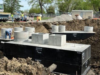 Crest Precast, Inc. installed septic tanks with capacities of 10,000 gallons and 8,000 gallons, as well as an 8,000-gallon pump tank at Big Lake State Park, located in Craig, Missouri. These tanks were equipped with flood-resistant manholes and hatch doors, and featured anti-flotation collars for added stability. Constructed with robust 7,000 psi concrete and enhanced […]