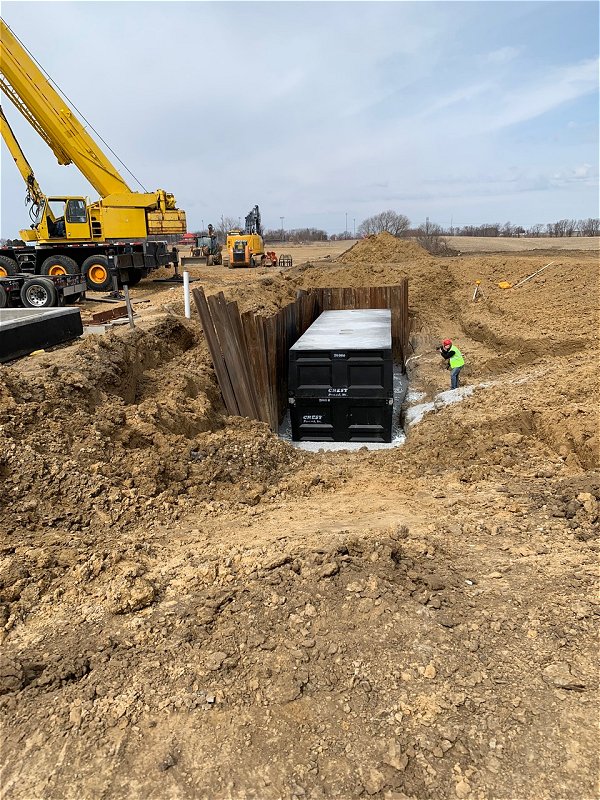 Crest Precast furnished Hometown Plumbing in Davenport, Iowa with a 20,000 gallon, 2 compartment tank with each section weighing 65,000 pounds.